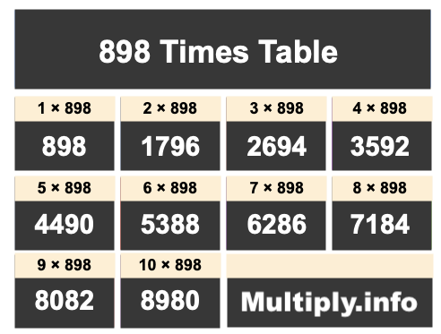 Did you find useful patterns in our 898 Times Table that you can use for the future? Check out the next Times Table on our list.