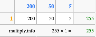 That's all there is to it! As you can see from the box above, the answer to 255 times 1 using the box method is 255.