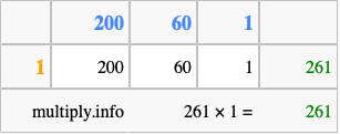 That's all there is to it! As you can see from the box above, the answer to 261 times 1 using the box method is 261.