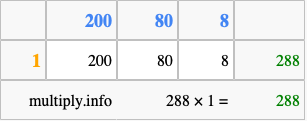 That's all there is to it! As you can see from the box above, the answer to 288 times 1 using the box method is 288.