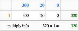 That's all there is to it! As you can see from the box above, the answer to 320 times 1 using the box method is 320.