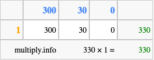 That's all there is to it! As you can see from the box above, the answer to 330 times 1 using the box method is 330.