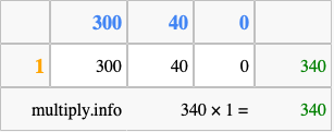 That's all there is to it! As you can see from the box above, the answer to 340 times 1 using the box method is 340.