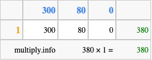 That's all there is to it! As you can see from the box above, the answer to 380 times 1 using the box method is 380.