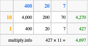 Finally, we add up all the sums we found in step 3 to get our final answer to 427 times 11.