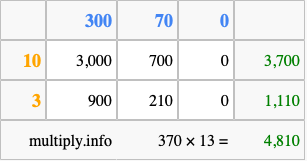 Below is an illustration showing you how to calculate 370 times 13 using the box method, using the instructions above.
