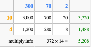 Finally, we add up all the sums we found in step 3 to get our final answer to 372 times 14.