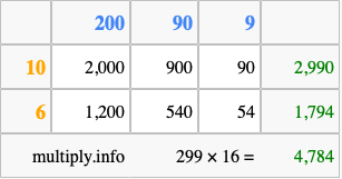 Below is an illustration showing you how to calculate 299 times 16 using the box method, using the instructions above.