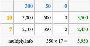 Finally, we add up all the sums we found in step 3 to get our final answer to 350 times 17.