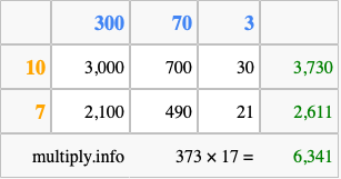 Below is an illustration showing you how to calculate 373 times 17 using the box method, using the instructions above.