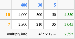 Finally, we add up all the sums we found in step 3 to get our final answer to 435 times 17.