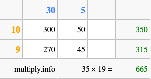 Finally, we add up all the sums we found in step 3 to get our final answer to 35 times 19.