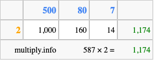 Finally, we add up all the sums we found in step 3 to get our final answer to 587 times 2.