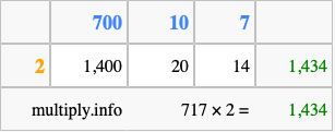 That's all there is to it! As you can see from the box above, the answer to 717 times 2 using the box method is 1,434.