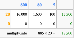 Finally, we add up all the sums we found in step 3 to get our final answer to 885 times 20.
