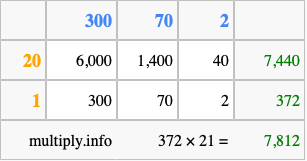 Finally, we add up all the sums we found in step 3 to get our final answer to 372 times 21.
