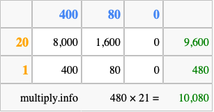 Finally, we add up all the sums we found in step 3 to get our final answer to 480 times 21.
