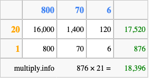 Finally, we add up all the sums we found in step 3 to get our final answer to 876 times 21.