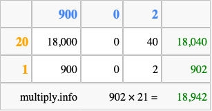 Finally, we add up all the sums we found in step 3 to get our final answer to 902 times 21.
