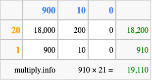 Finally, we add up all the sums we found in step 3 to get our final answer to 910 times 21.