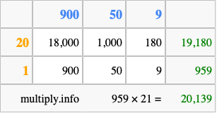 Finally, we add up all the sums we found in step 3 to get our final answer to 959 times 21.