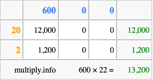 Finally, we add up all the sums we found in step 3 to get our final answer to 600 times 22.