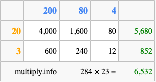 Finally, we add up all the sums we found in step 3 to get our final answer to 284 times 23.