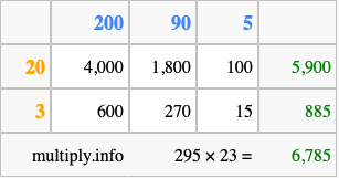 Finally, we add up all the sums we found in step 3 to get our final answer to 295 times 23.