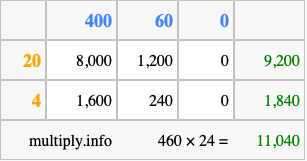 Finally, we add up all the sums we found in step 3 to get our final answer to 460 times 24.