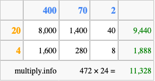 Finally, we add up all the sums we found in step 3 to get our final answer to 472 times 24.