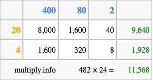 Finally, we add up all the sums we found in step 3 to get our final answer to 482 times 24.