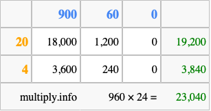 Finally, we add up all the sums we found in step 3 to get our final answer to 960 times 24.