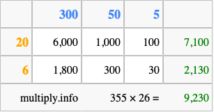 Finally, we add up all the sums we found in step 3 to get our final answer to 355 times 26.