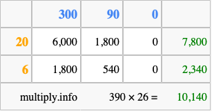 Finally, we add up all the sums we found in step 3 to get our final answer to 390 times 26.