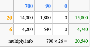 Finally, we add up all the sums we found in step 3 to get our final answer to 790 times 26.
