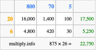 Finally, we add up all the sums we found in step 3 to get our final answer to 875 times 26.
