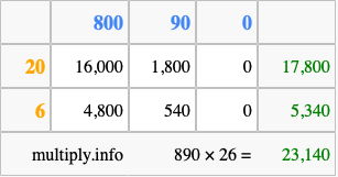 Finally, we add up all the sums we found in step 3 to get our final answer to 890 times 26.
