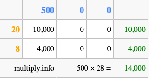 That's all there is to it! As you can see from the box above, the answer to 500 times 28 using the box method is 14,000.