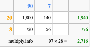 Finally, we add up all the sums we found in step 3 to get our final answer to 97 times 28.
