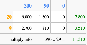 Finally, we add up all the sums we found in step 3 to get our final answer to 390 times 29.