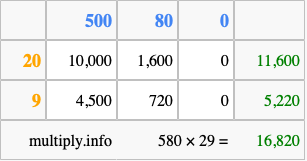 Finally, we add up all the sums we found in step 3 to get our final answer to 580 times 29.