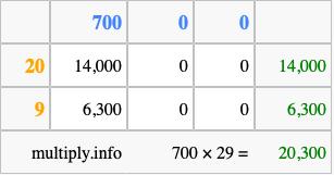 Finally, we add up all the sums we found in step 3 to get our final answer to 700 times 29.