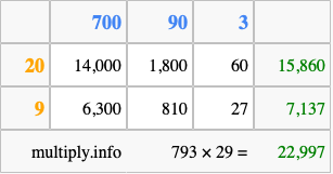 Finally, we add up all the sums we found in step 3 to get our final answer to 793 times 29.