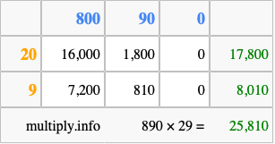 Finally, we add up all the sums we found in step 3 to get our final answer to 890 times 29.