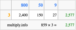 Below is an illustration showing you how to calculate 859 times 3 using the box method, using the instructions above.