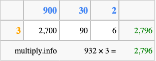 Finally, we add up all the sums we found in step 3 to get our final answer to 932 times 3.