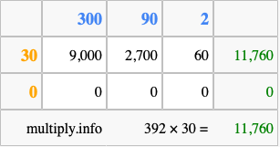 Below is an illustration showing you how to calculate 392 times 30 using the box method, using the instructions above.
