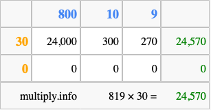 That's all there is to it! As you can see from the box above, the answer to 819 times 30 using the box method is 24,570.