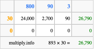 That's all there is to it! As you can see from the box above, the answer to 893 times 30 using the box method is 26,790.