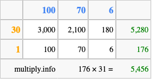 Finally, we add up all the sums we found in step 3 to get our final answer to 176 times 31.